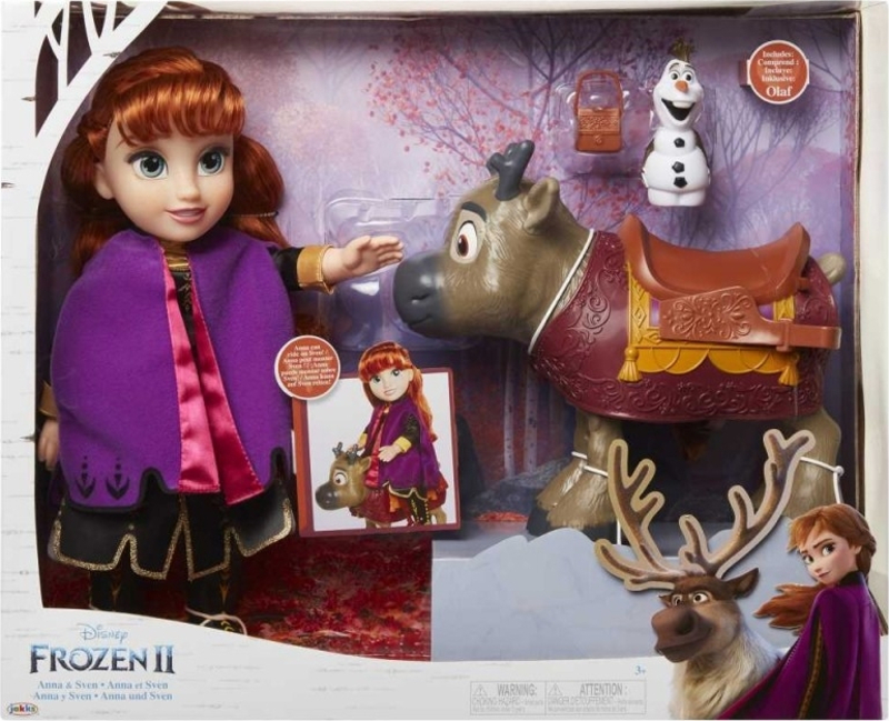 Κούκλα Άννα 30 εκ. με φόρεμα από την ταινία Frozen II και μαζί φιγούρα των Σβεν και Όλαφ. .