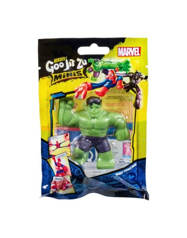 Goo Jit Zu Mini Marvel S4-8 Σχέδια (GJM05000). Η μαγική…χλαπατσο-ενέργεια Goo έπεσε πάνω στα ζώα του ζωολογικού κήπου μετατρέποντάς τα όλα στους πιο αστείους και… ζουληχτούς ήρωες! Είναι…οι Goo Jit Zu και κάθε ένας κρύβει μια μοναδική “δύναμη”! Οι ζουληχτοι Goo Jit Zu τώρα και με τη μορφή αγαπημένων ηρώων Marvel σε μίνι έκδοση! Τεντώστε τους, θα αποκτήσουν 4 φορές το μέγεθος τους και επανέρχονται και πάλι άμεσα στην αρχική τους μορφή. Συλλέξτε διαφορετικούς χαρακτήρες, ζουλήξτε, τεντώστε και κάντε μάχες με τους πιο διασκεδαστικούς ήρωες. H συλλογή περιλαμβάνει του εξής ήρωες: Spider-Man, Hulk, Iron Man, Black Panther, Miles Morales, Captain America, Venom, Groot.