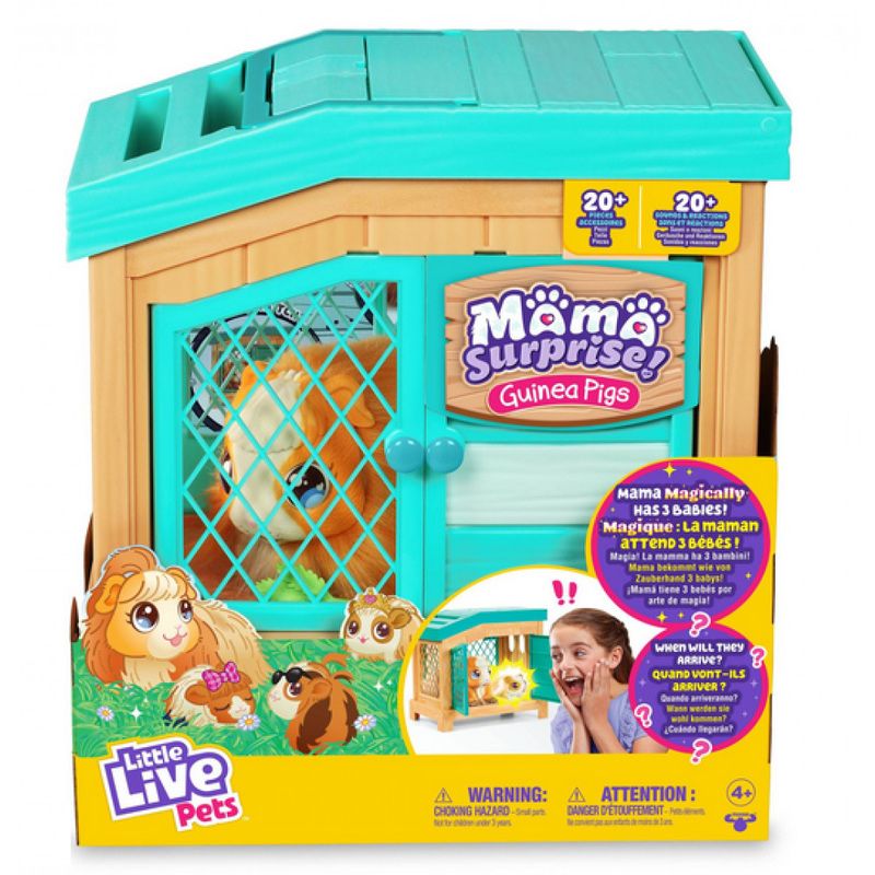 Αυτό το μαλακό και διαδραστικό ινδικό χοιρίδιο της μαμάς (+ 20 ήχοι) έρχεται με το πολυτελές εξοχικό της. Φροντίστε το ινδικό χοιρίδιο σας, ταΐστε το, ακούστε τους μικρούς του θορύβους και όταν η καρδιά του κοκκινίσει, πάρτε την στο σπιτάκι του και κλείστε την πόρτα. Σύντομα θα μπορείτε να ανακαλύψετε το νεογέννητο μωρό της και ένα πακέτο φροντίδας. Και έτσι έως και 3 φορές γιατί έχετε 3 μωρά έκπληξη συνολικά που έρχονται το καθένα με το πακέτο περιποίησης και τα αξεσουάρ σας για να παίξετε μαζί τους. Και μπορείτε να επαναλάβετε το παιχνίδι ξανά και ξανά!