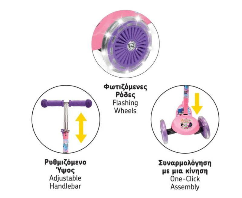 Scooter Plus Disney Frozen με 3 ρόδες για ατέλειωτες ώρες διασκέδασης με την αγαπημένη σου πριγκίπισσα! Ανέβα πάνω στο πατίνι και κάνε ατελείωτες βόλτες!