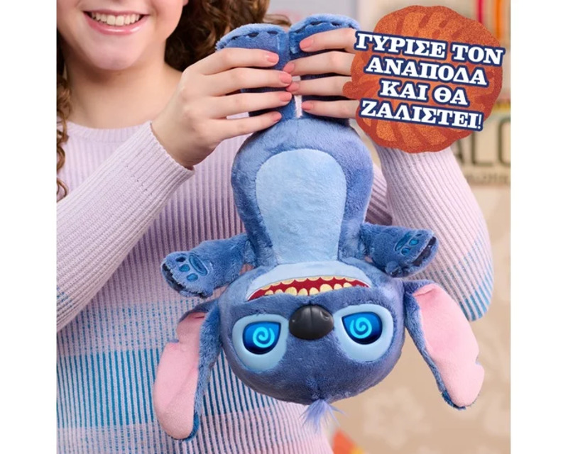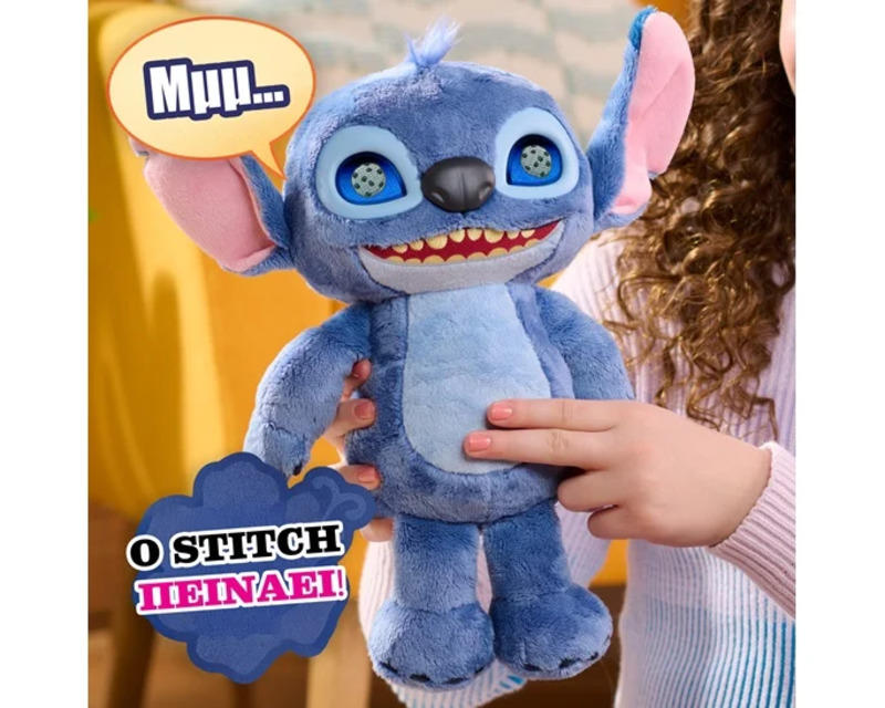 - Διαδραστικά Μάτια & Ήχοι: Ο Stitch διαθέτει εκφραστικά LCD μάτια που φωτίζουν και κινούνται, μαζί με πάνω από 50 ήχους και φράσεις που αντιδρούν στην κίνηση και στην αφή. Αποκάλυψε όλο το φάσμα των συναισθημάτων του γλιστρώντας τον διακόπτη στην πλάτη από “TRY ME” σε “ON”.