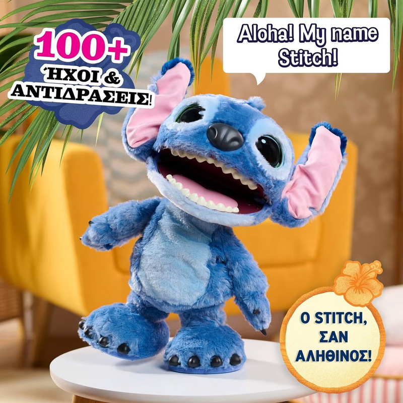 - Πάνω από 100 Ήχοι & Κινήσεις: Ο Stitch εκφράζει όλη του την προσωπικότητα με πλήθος αντιδράσεων – γέλια, τραγούδια, χορούς, φράσεις και αστείες κινήσεις που κάνουν κάθε παιχνίδι μοναδικό.